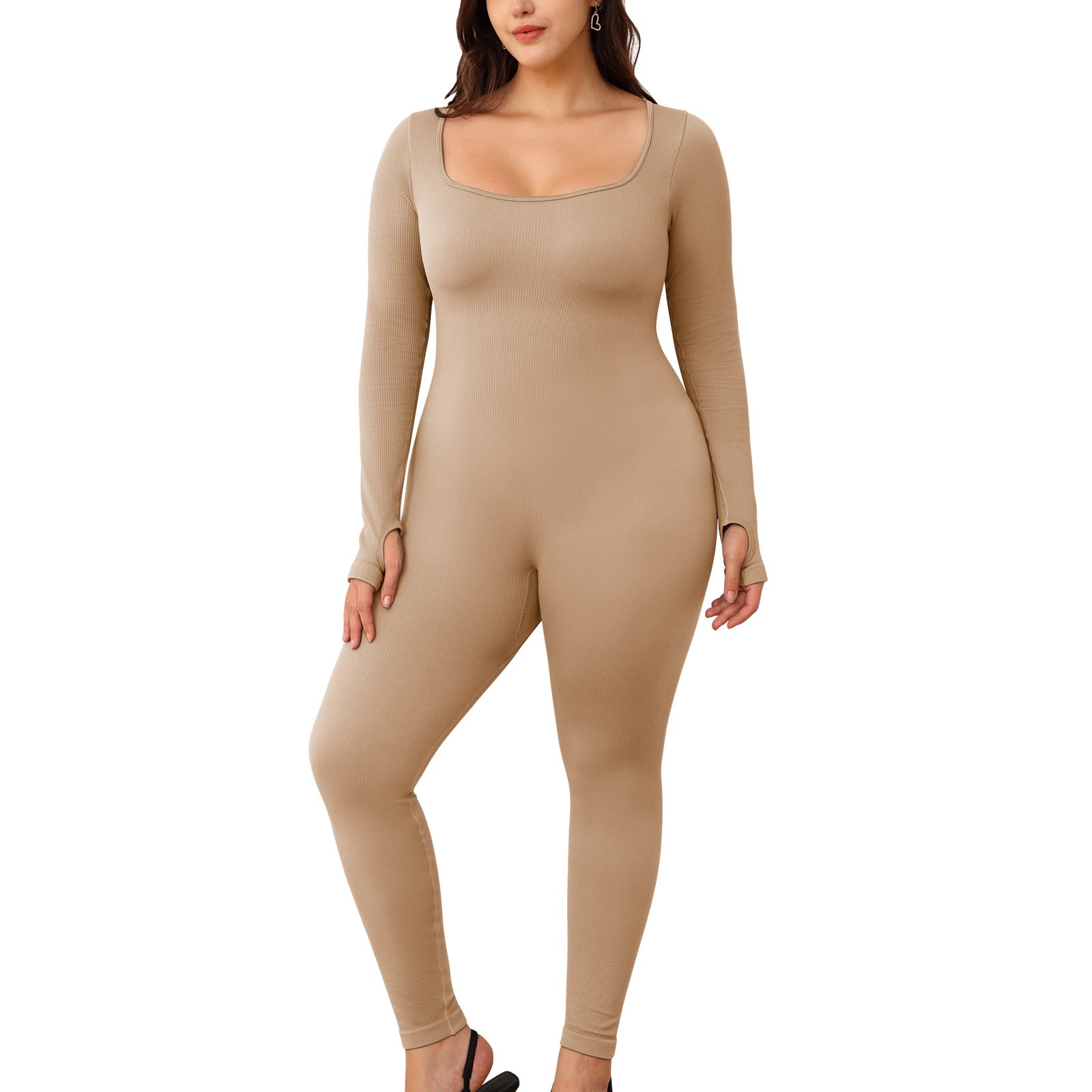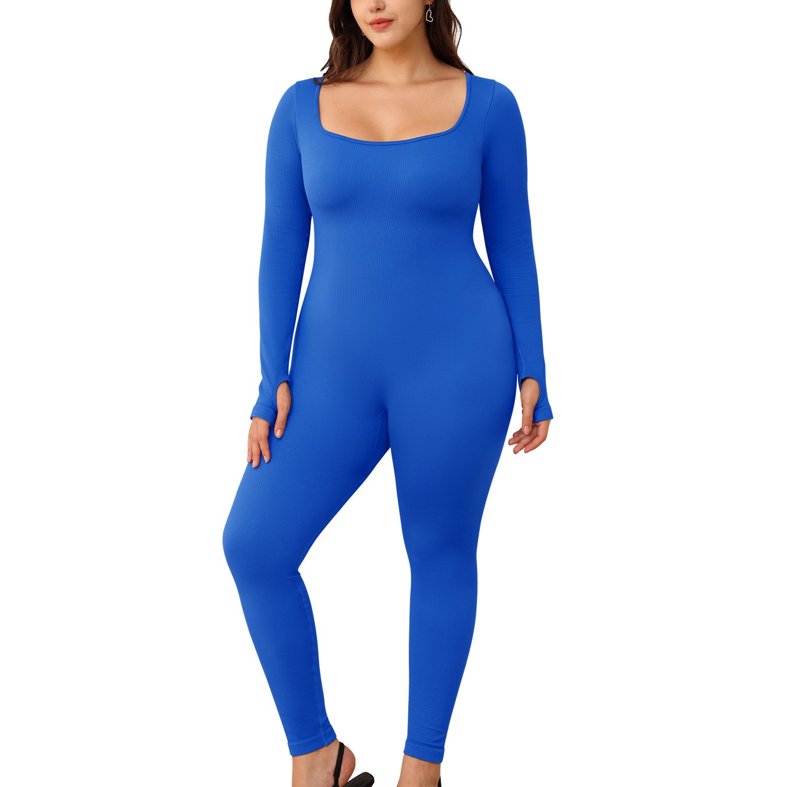 Square necked long sleeved pants jumpsuit 1 set