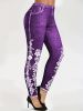 Plus Size Floral Print High Rise Leggings; Women's Plus Casual High Stretch Skinny Pants